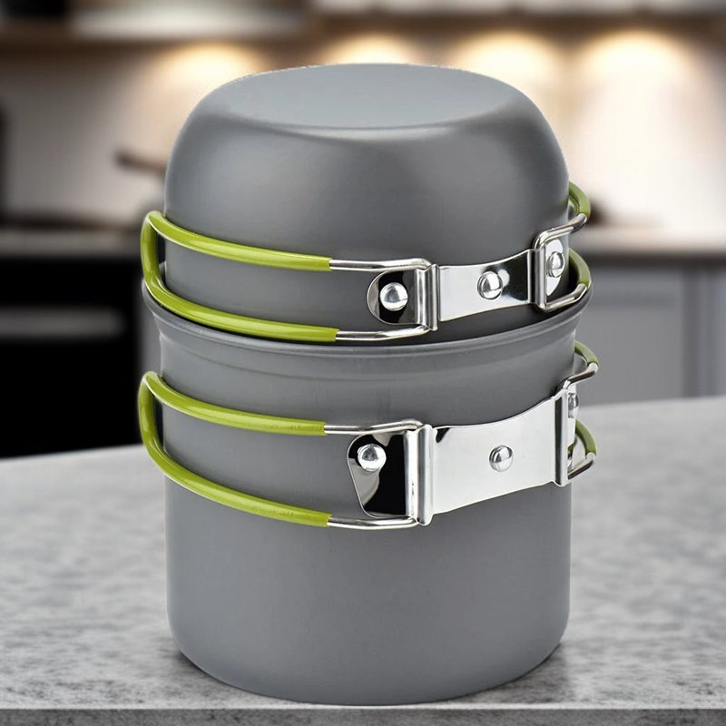● Ez a hordozható kemping főzőkészlet 12 személy számára elegendő edényekkel és evőeszközökkel tökéletes választás nagyobb családok vagy baráti társaságok számára a szabadban. ● Tartós, könnyű anyagból készült, így könnyen szállítható hátizsákban vagy autóban, ideális túrázáshoz, piknikezéshez és kempingezéshez. ● Komplett készlet, amely minden szükséges eszközt tartalmaz – fazekak, serpenyők, tányérok, bögrék és evőeszközök –, hogy bárhol kényelmesen készíthessen és fogyaszthasson ételeket. ● Egyszerűen tisztítható és újrahasználható, így időt takarít meg és környezetbarát megoldást nyújt minden szabadtéri kalandhoz.